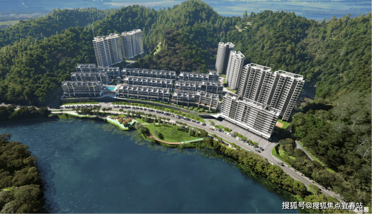 这块土地直接坐落在山湖之间,三面环山、南向望湖,是一个真正“背山望湖”的项目,有藏风聚气之势。