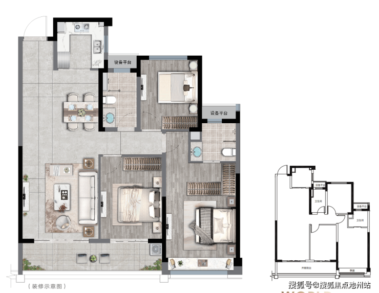 建面约120㎡ 中间套大三房,精致户型,舒适格局,享优渥通风采光;入户玄关、阔朗餐客一体衔接大阳台,居家待客尽尊崇;主卧格局大气,带私密卫生间,舒适感非同凡响;大尺度客厅阳台,俯仰皆美景,举目天地宽;北向书房静居一隅,高谈阔论间,大家风范不彰自显。