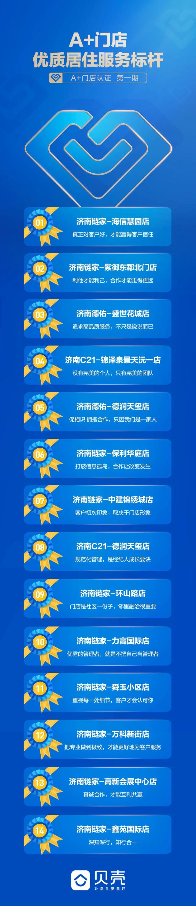 优质居住服务标杆!济南排名前列期A+门店出来了