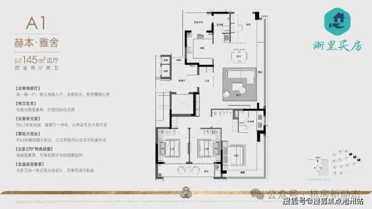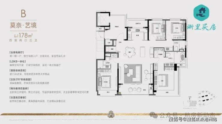 270°全明电梯厅、奢阔大四房南向双套房、中西结合两大餐饮中心、270°无边界艺术主卧、270°观景飘窗奢装艺术主卫、全屋精细化收纳,挚献杭州塔尖奢赏