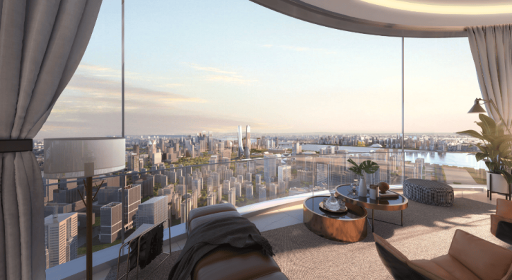 华鸿都会中心为“三叶双子恒星”,它代表了钱江世纪城的生长曲线,也是“方圆之间”的生活格局。项目以三叶草为建筑原型,这样的建筑设计也造就了每户270度的环幕都市景观,较高的窗墙比为室内提供大尺度的采光面及通透感,阳光如流水般倾泻。