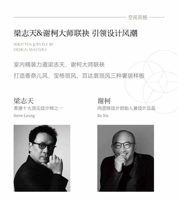 室内设计:大师精工——全球31位室内设计师之一,香港十大顶尖设计师之一,也被誉为中国现代简约之父;《梦想改造家》知名设计师,坚持以“做有诚意、人文的设计”的理念,将具有温暖与关怀的现代东方风格融入设计之中,也具有当代禅意空间建造设计巨擘之称。