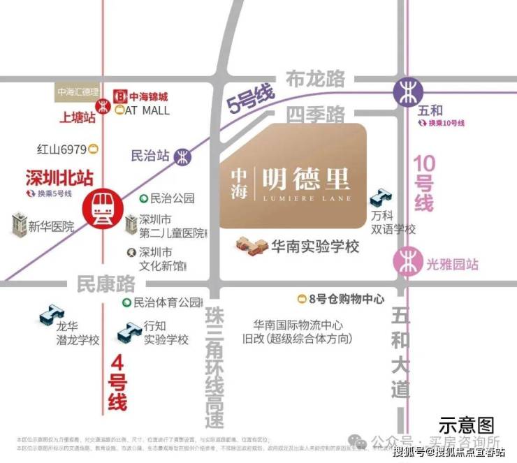 中海明德里背靠北站商务区,快速接驳深圳北站,1.5公里内坐享民治,光雅园双地铁站。