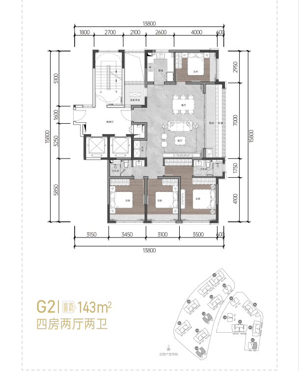 •142㎡:四房两厅两卫 14#送阳台11㎡