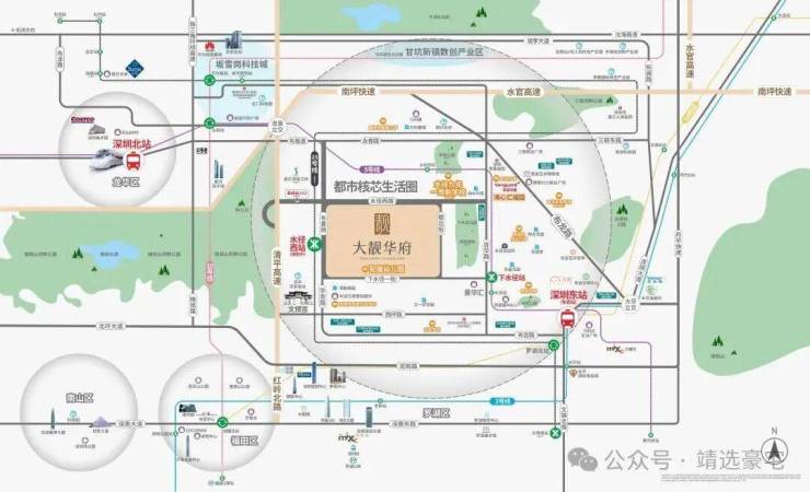 吉华承担着建设龙岗区“一芯两核多支点”发展战略中的“西核”——数字信息核、协同周边区域打造世界级ICT产业集群承载区、构筑龙岗“都市科技绿芯”的使命任务。片区与坂雪岗科技城仅一路之隔,具备承载世界级电子信息产业集群辐射的政策优势和天然区位优势。