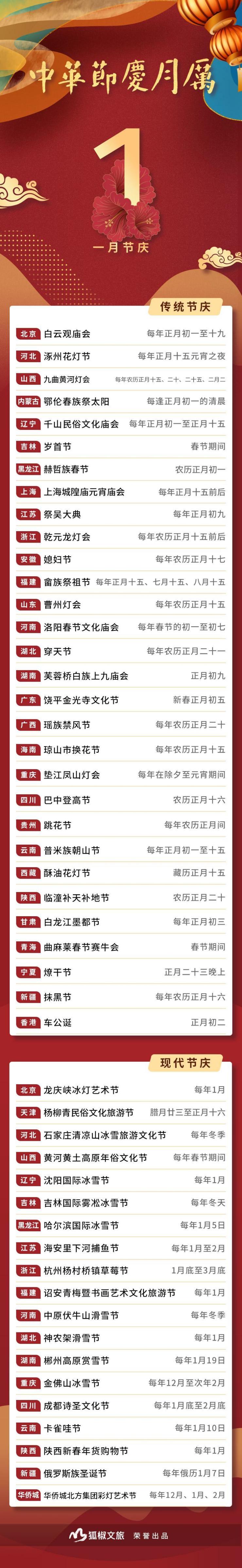 近日,由狐椒文旅推出的《中华节庆月历|1月节庆》发布。
