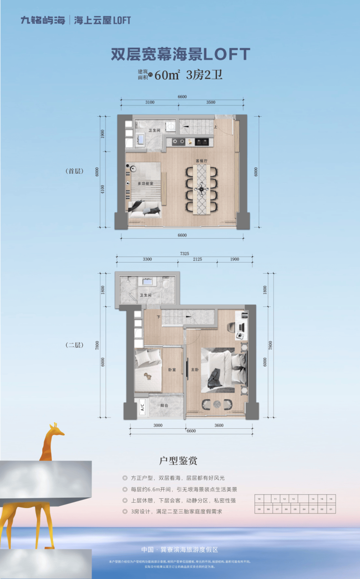 双层宽幕海景LOFT 60㎡ 3房2卫