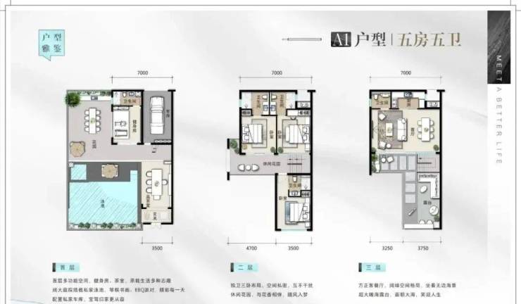 建筑面积80㎡,赠送率高达225%—400%,实际使用面积270㎡—320㎡,5房5卫别墅,也可改6房。