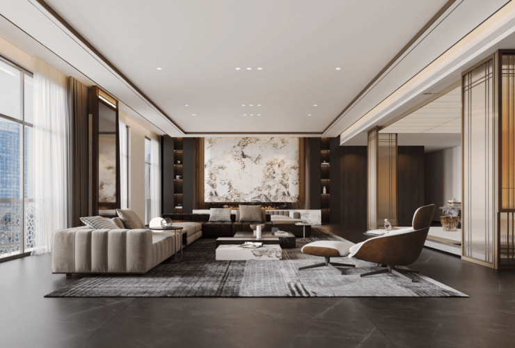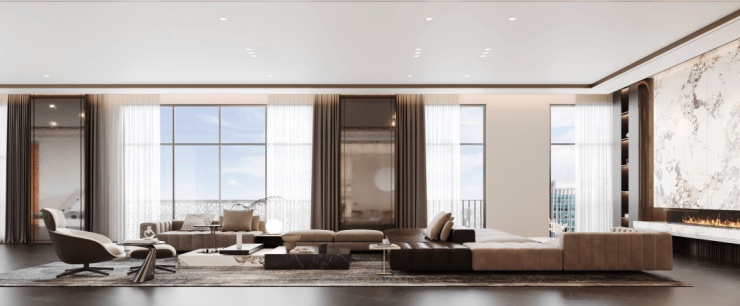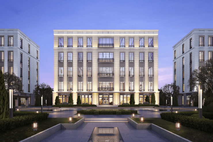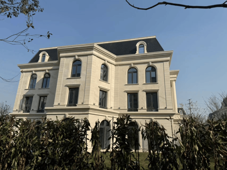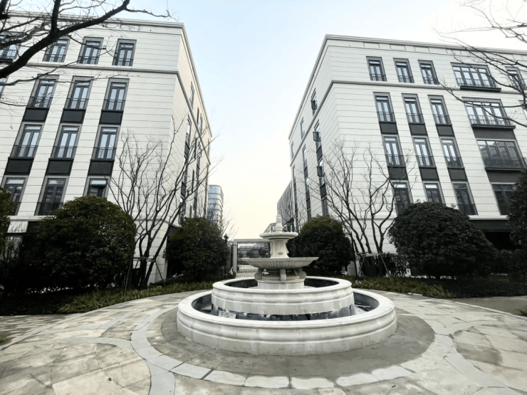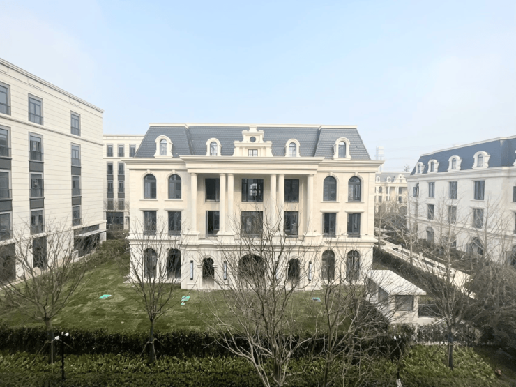 法式平墅:单层面积397-686m²,均价2.5w元/m²,通燃气,入户有独立花园,共5层,得房率88%,一户一梯