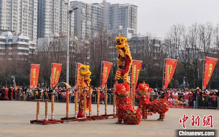 中新网武汉2月7日电(张芹 曹和平 孙蕊)伴随阵阵锣鼓声,武汉市武昌区首义广场7日上午龙狮齐舞,武昌区第三十届“首义之春”龙腾狮跃“闹新春”活动如期而至。今年“首义之春”文化活动恰逢武昌古城建城1800年,活动现场,1800只空竹龙竞相挥舞,各类民俗活动轮番上演。