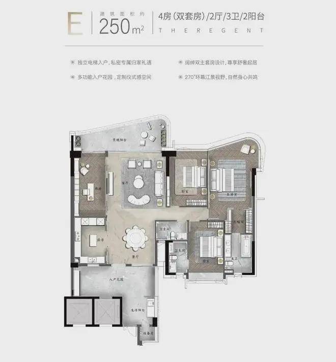 【天启环幕江景板房鉴赏】 【E户型】约250㎡一线环幕江景大宅