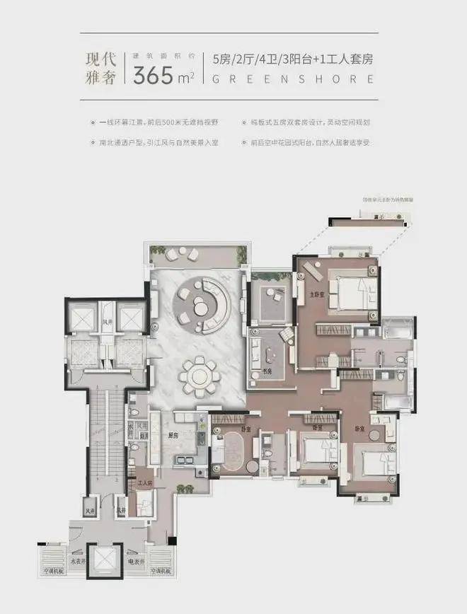 约365㎡5房双套房|2厅|4卫|3阳台+1工人套房