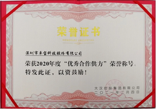 日前,大汉集团举行了“破浪”2020年度颁奖盛典暨2021年春节联欢会,卓宝科技获评大汉集团2020年度优秀合作供方。