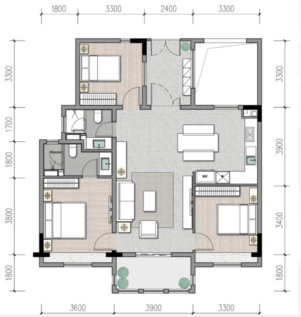 ·主客双卫:两卫生间相邻,管线分布合理,干湿分离;