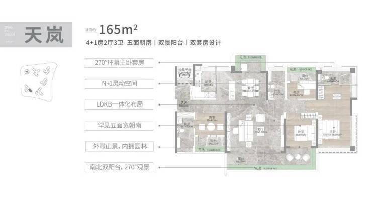 深入洞察客户物质、情感与精神的多维需求,因地制宜,保留原生地脉上的6棵古榕,打造山前生活馆,引进广州首家新山书屋,规划无边泳池、架空层八大空间、体育公园、山体公园等,打造一个“自由、健康、分享、交流”的美好生活场域。