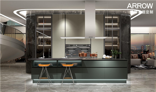 除了感恩身边的亲近之人,也让我们趁机为“家”表白一下,增添满满的幸福感吧!首先登场的是我们的厨房,能让我们在天气渐凉的日子,用酱醋的香味、饭菜的美味,为生活添滋增彩,温暖居住在这里的每个人的身心。厨房的温度也是家的温度,厨房的含义更是一种寄托,承载着空间中发生的各种生活场景,充盈着温暖、优雅和健康的氛围。箭牌家居定制劳斯系列打造的个性时尚的双一字造型开放式厨房,不仅有开放式岛台融入就餐功能,为家庭聚餐提供舒适格调环境场所,而且应有尽有的高端电器均能整齐隐藏在高柜内,科技感满满,激发人和空间之间的交流互动,也让更多的人愿意走进厨房,学会享受生活。