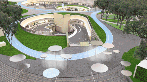 项目团队与设计师一起将有限的地面空间充分利用,分割为不同的功能区划,加入运动跑道、儿童游憩区、艺术装置和景观绿化等元素,让整个地面空间昭示性更强且非常具有实用性。开放性的广场,也使得项目成为了周边居民、办公族群日常的休憩场所,为项目吸引到天然客流。