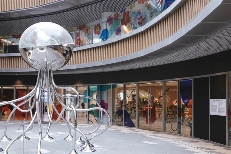 艺术元素同样延伸进了商业内部空间。商场多个节点空间都加入了联合艺术家打造的特色装置或艺术化包装,几乎每一次转角都能看到不一样的风格呈现。同时,一些互动性的公共空间也被加以打造,成为了消费者日常的休憩场所。在这样的语境之下,艺术很自然地融入了消费场景中,而不是生硬的加入,没有产生割裂感。
