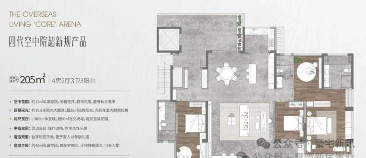 最大的205㎡更是“降维打击”!约32㎡的空中庭院,约19.8米南向大面宽,超36㎡的阳台,视野开阔到能把窗外的风景框成一幅画,这种尺度在同类型产品里可谓是相当能打。
