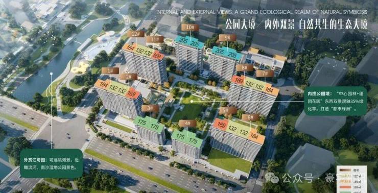 项目自己还打造了一个内部的“中心园林+组团花园”,东西双景观轴绿化率为35%,外可欣赏涌景海景,内可以享受中心园林。