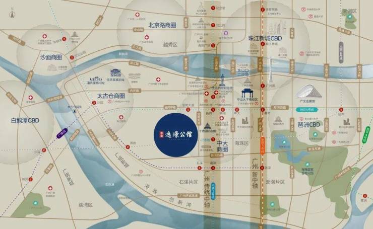 中冶·逸璟公馆地处广州中心区域,周边商业资源极为丰富。大型购物中心如万国广场、北京路商圈、太古汇、天汇广场等均在短时间内可达,涵盖高端购物、餐饮、娱乐等多元化商业业态。周边还有众多历史文化街区、精品咖啡馆、艺术展馆等,为业主提供高品质的休闲生活。此外,项目周边绿化资源丰富,邻近海珠湖、滨江公园等生态景区,为繁忙都市生活增添一片宁静。