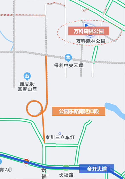 但随着万科森林公园东侧的中央公园东路南延伸段竣工通车后