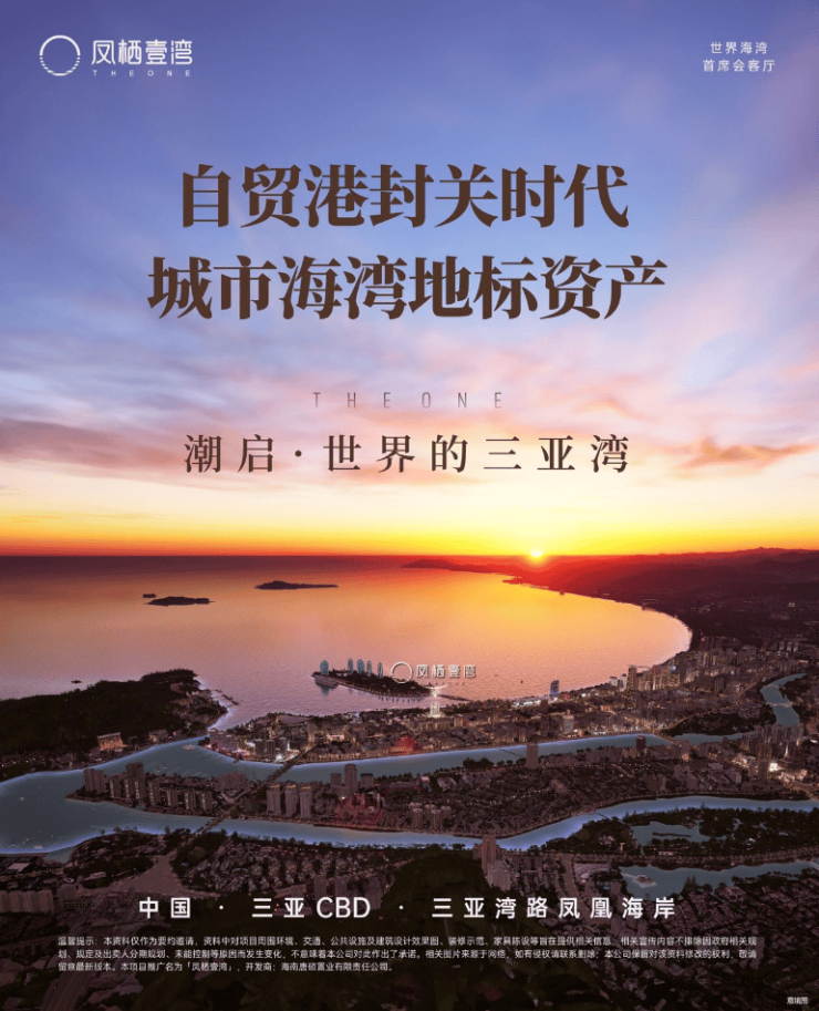 凤栖壹湾位于三亚CBD唯一海景单元——凤凰海岸,定位为旅游港自贸服务与邮轮、游艇、文化艺术综合消费区。