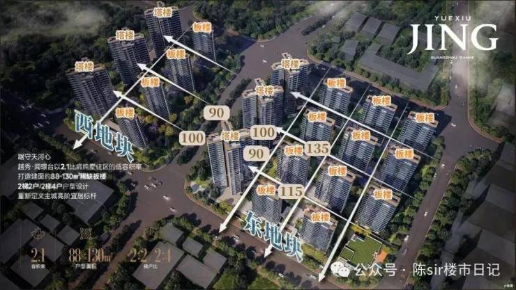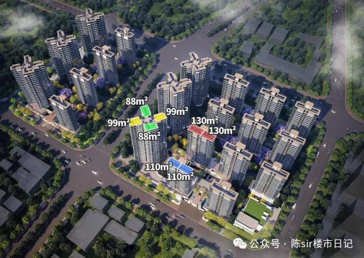 塔楼2T4设计,主打88、99平户型。