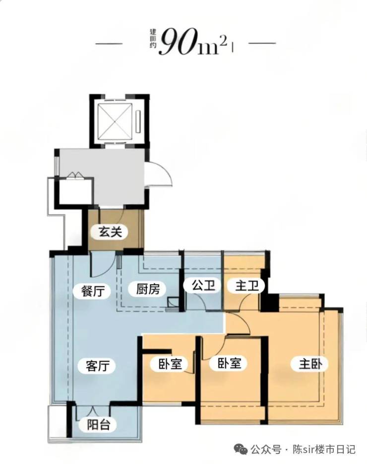 03西户:90㎡横厅三房,西南向