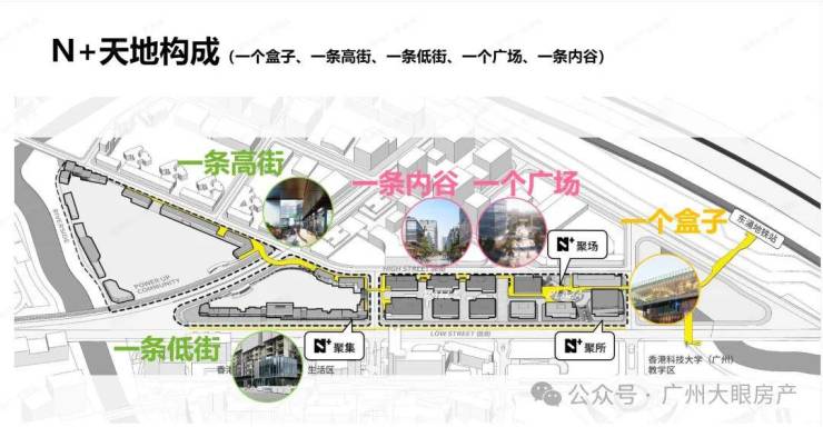 “一个低街”——汇聚越秀服务生态文创店、港科大的实验店等,约1.17万㎡活力商业街区,打造集聚港味生活的创智路;
