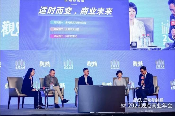 两场演讲之后,年会进入第二环节的主题讨论会,讨论主题为“适时而变,商业未来”。