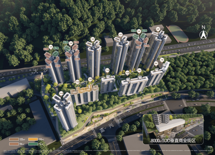 产品类型:建面约 74-94㎡高层三至四房、建面约 110-125㎡板式小洋房