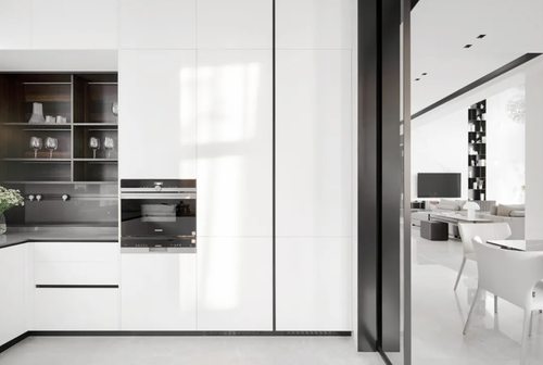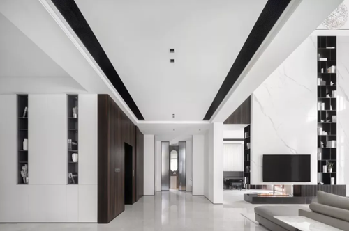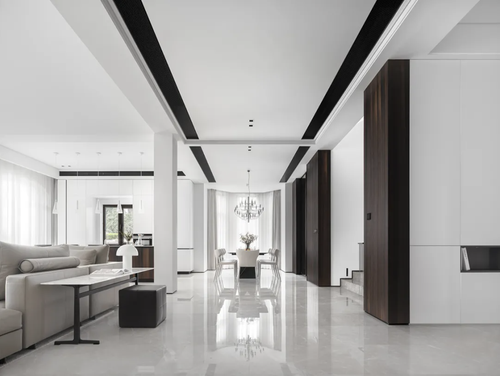 设计师在进行空间布局时,十分重视空间连接,不同功能性空间的过渡自然而又融为一体,客厅的敞亮、卧室的私密、餐厅的自由都被不同折叠度的线条连接。