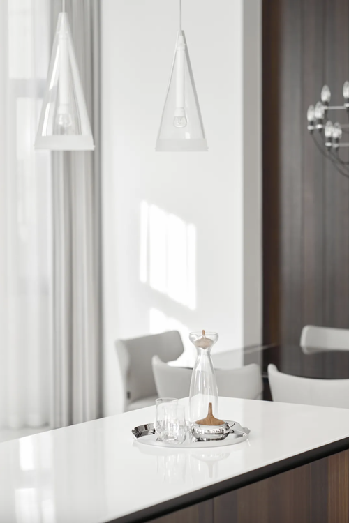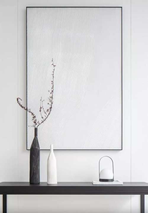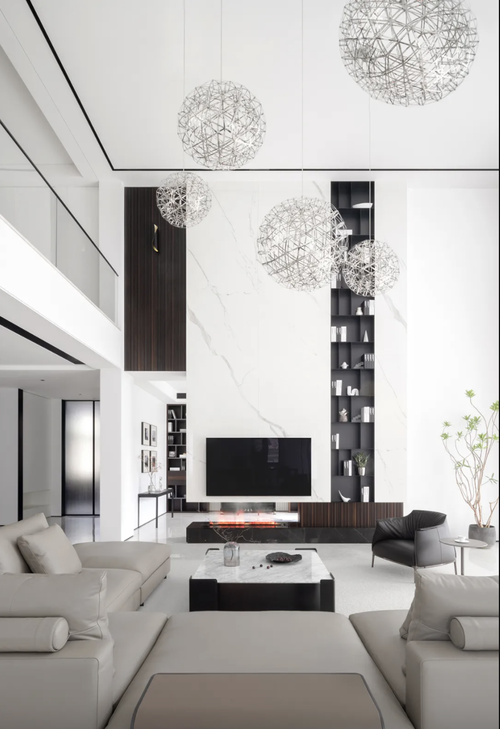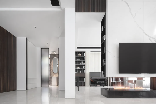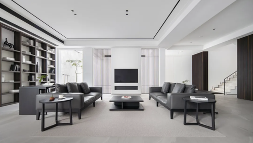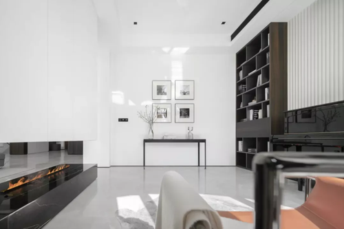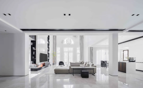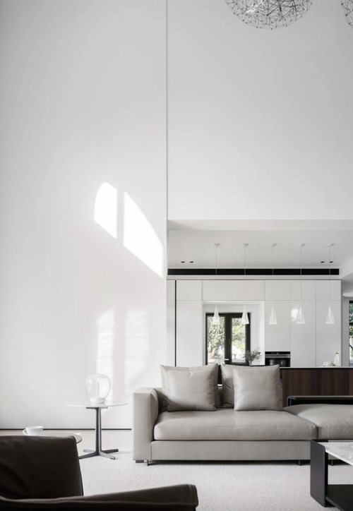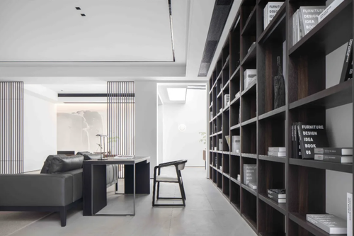 大道至简,大简至美。整栋房子临湖而居,远离尘嚣,不外如是。协同与原建筑的框架结构,设计师将空间的氛围感融合室外之景,玻璃的通透、边界的疏离加之色彩的淡然,都在尽力书写着空间的秩序。