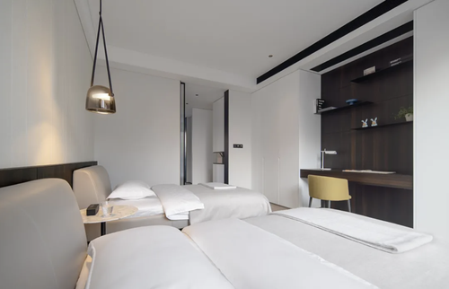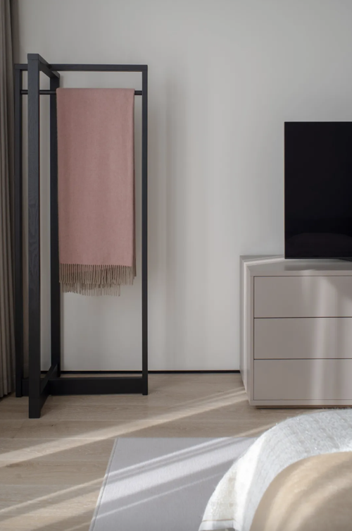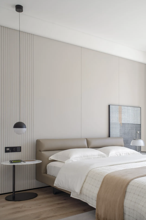 阳光洒落于卧室窗边,充盈的光线,将这方空间变得柔和而静美。加以依山傍水的设计灵感,室内室外,不同心境,都被赋予舒适与安宁。