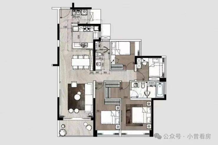 140平方米的户型则有横厅和竖厅两种布局可供选择,空间利用更加灵活;