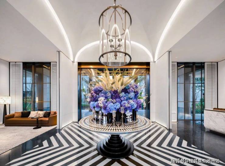 在建筑外观上,社区大门保留法式经典的轴线对称布局,柱廊排列搭配迎宾水景,顶部鎏金线条勾勒出典雅质感,踏入示范区,整体艺术感和美感扑面而来。
