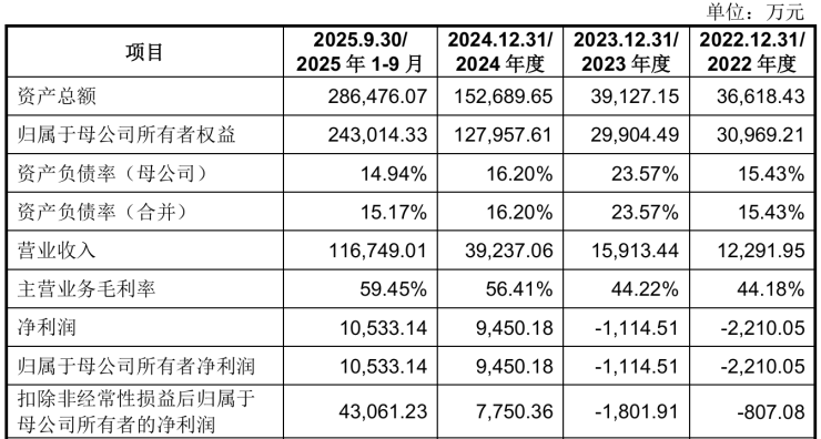 同时披露的招股书显示,该公司近些年业绩持续增长。审核报告期内,即2022年-2024年营收分别为1.23亿元、1.59亿元、3.92亿元,去年前三季度则快速增长到11.67亿元。