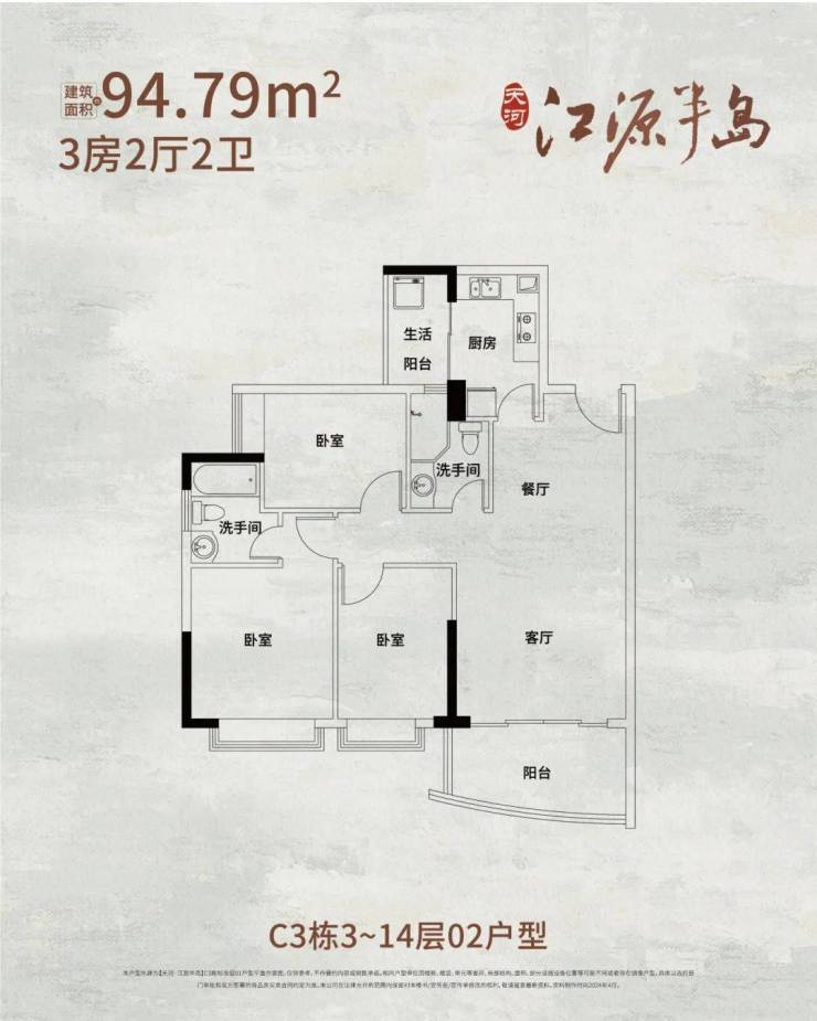 约95㎡3房2卫 南向观江