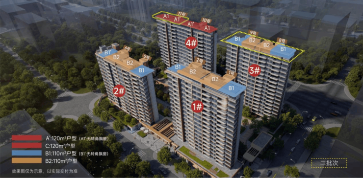 建面约110㎡边套(B1户型),1个宽面阳台、5个飘窗,整体南向面宽做到了约12.3米,大横厅面宽约5.4米,带来超大空间体验和充足通风采光。更为难得的是,该户型标配了全屋飘窗,主卧更是拥有270°转角飘窗,拓宽室内景观视野的同时,增加了实际空间使用率,加上三玻两腔系统窗隔音,在欣赏窗外景色的同时,也不会被噪音打扰。建面约110㎡中间套(B2户型),也同样做到了南北通透,三开间朝南,洄游动线,布局合理,无论是空间尺度还是通风采光,与边套享受一样的品质感!