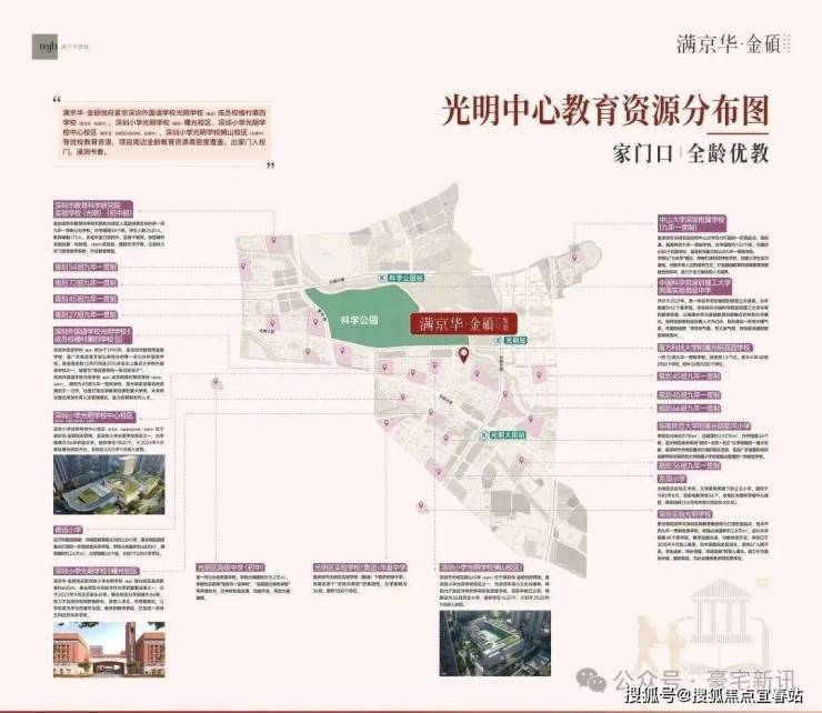 满京华·金硕项目直面占地约208万㎡的科学公园(在建中),近享深圳国际美术馆(暂定名、在建中)、深圳科学技术馆、科学城体育中心(在建中)、会议中心(规划中)等市政级文体配套;还坐拥狮山公园(规划中)、约9.4万㎡的东周文化公园,约10万㎡的开明公园,约56万㎡的新城公园等丰富绿色生态资源。