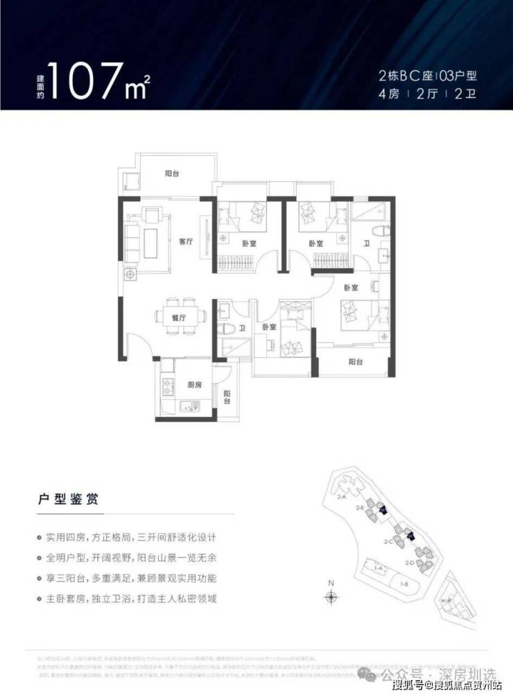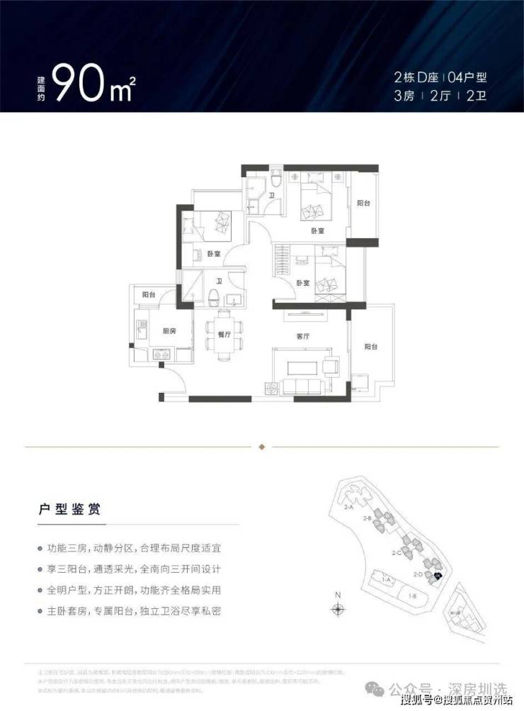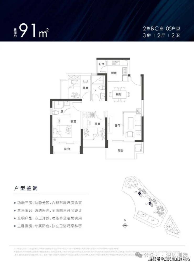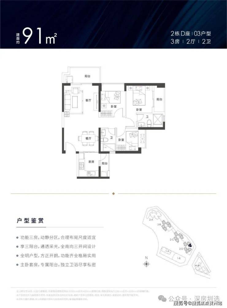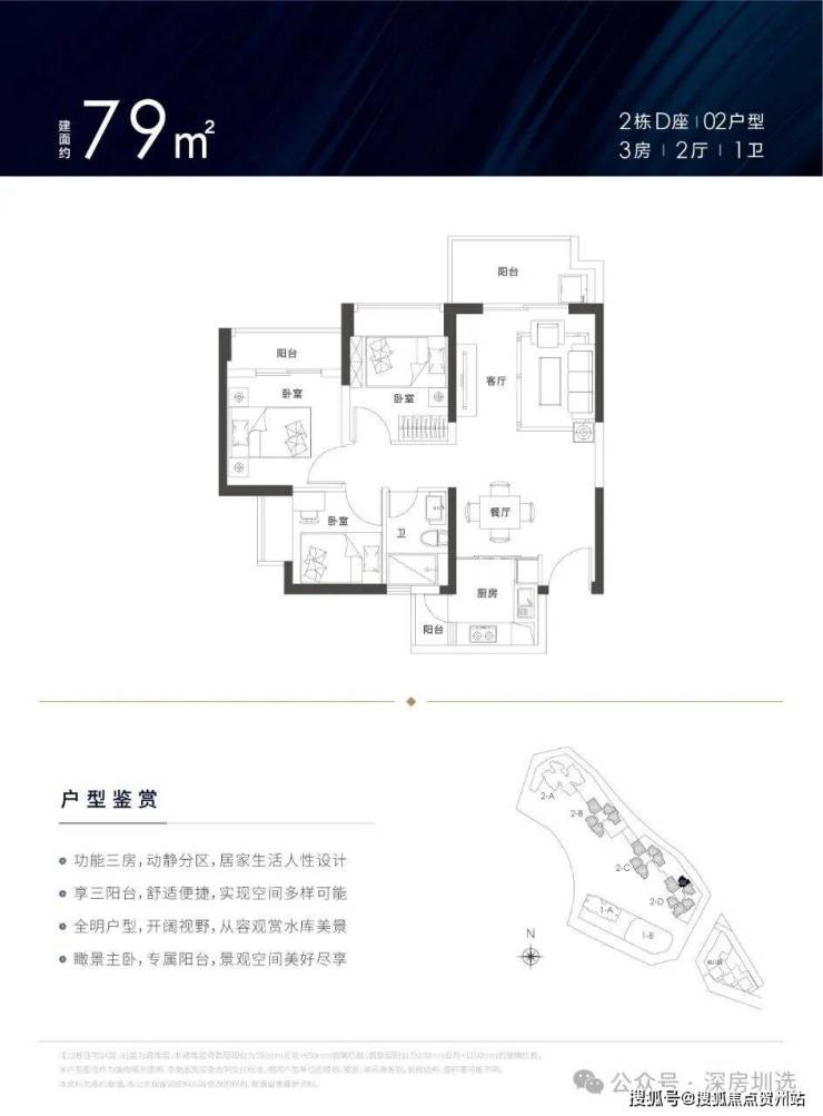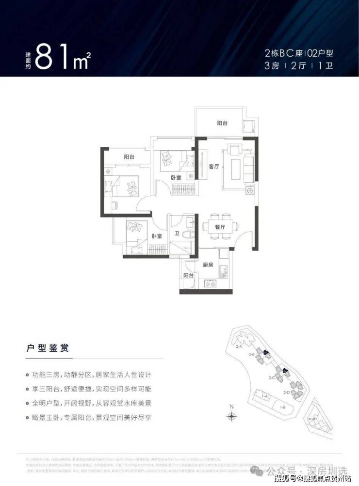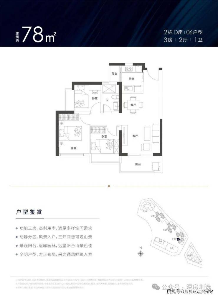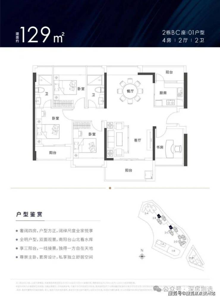 建面约78-129㎡3-4房户型方正,南北通透,享主卧、客厅、厨房三阳台设计,超高使用率,拥有超大景观面,居家即可观美景。