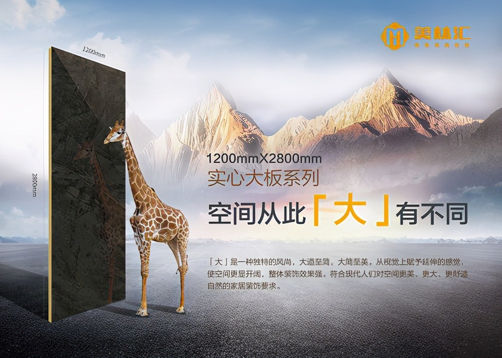 随着消费升级,人们对于墙面空间的装饰美感越发注重。如何让家居墙面设计拥有更多可能,为用户带去更优质的体验?美林汇基于市场趋势推出实心大板系列,以突破常规的1200X2800mm尺寸,满足了现代人们对空间更大、更美、更舒适的家居装饰需求。