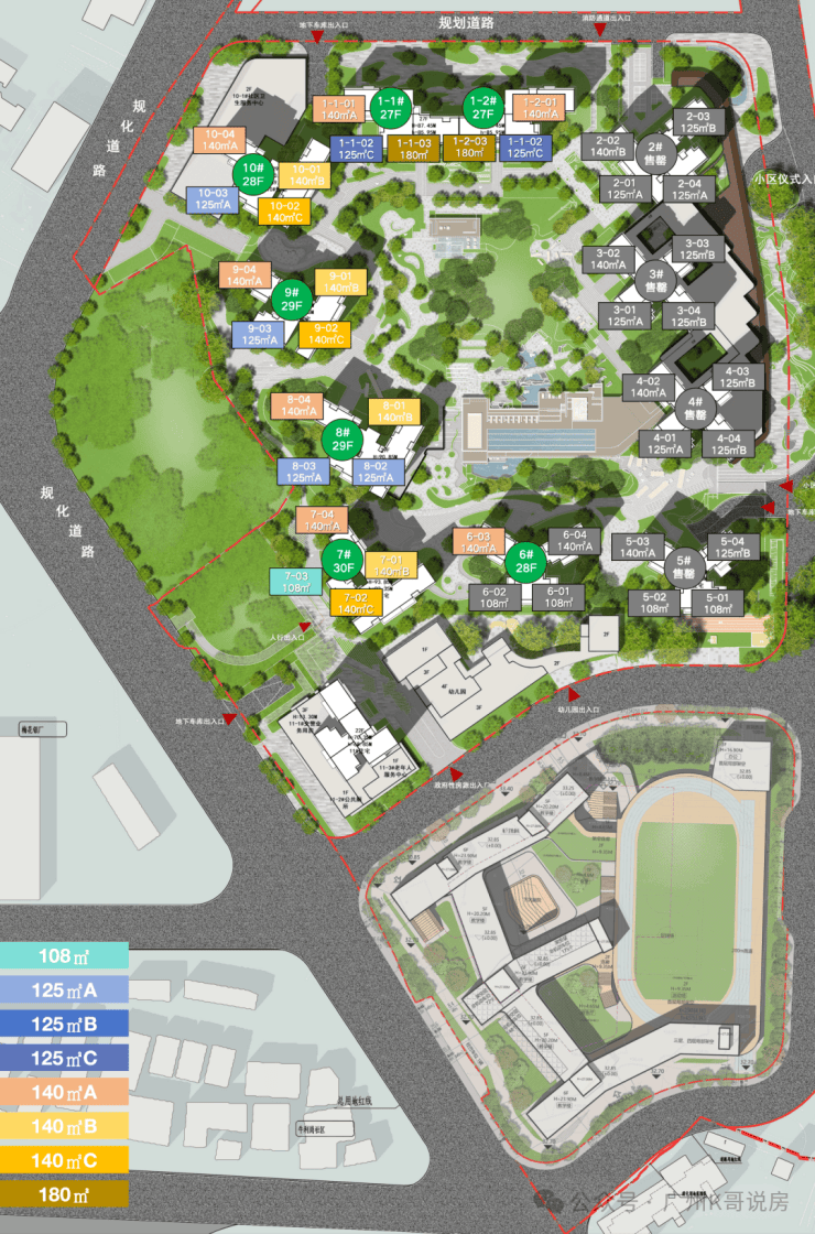 该项目内部建有12班幼儿园及一所45班九年制中小学,12年的教可以实现目送式教育,所配套的九年一贯制学校,引入广州中学,作为广州中学教育集团的成员,将接受广州中学的直接管理,并得到华阳小学的协助,将于2026年9月开学。