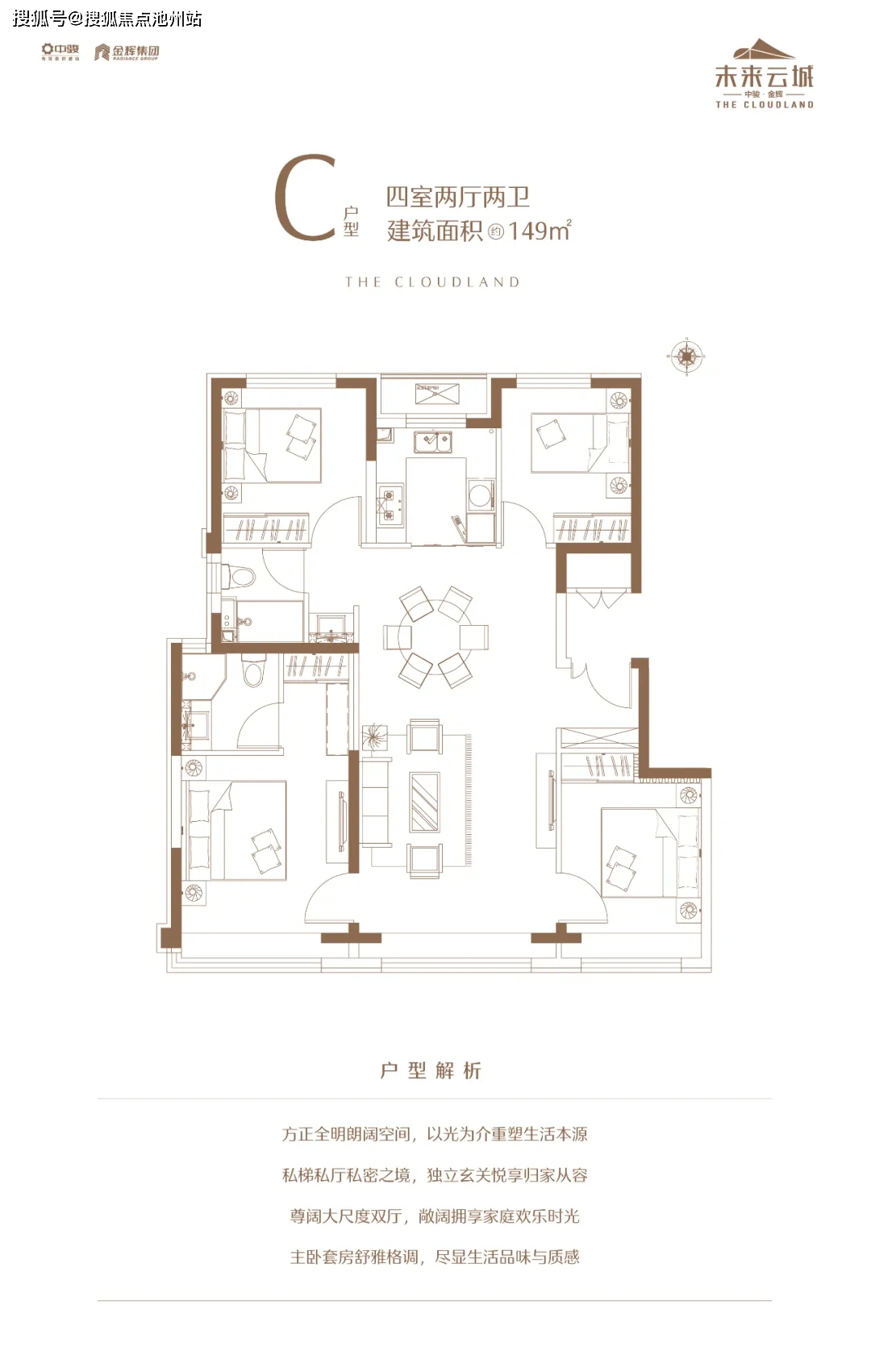 中骏金辉·未来云城携手战略设计师梁志天大师,所打造的是中骏品质较高的“天”字系,每一个“天字系”作品,都是中骏在住宅打造上的高品质之作。从上面三个户型上就可以看出,中骏的目标是为尊崇高品质生活的客群打造优悦独享的住宅典范。