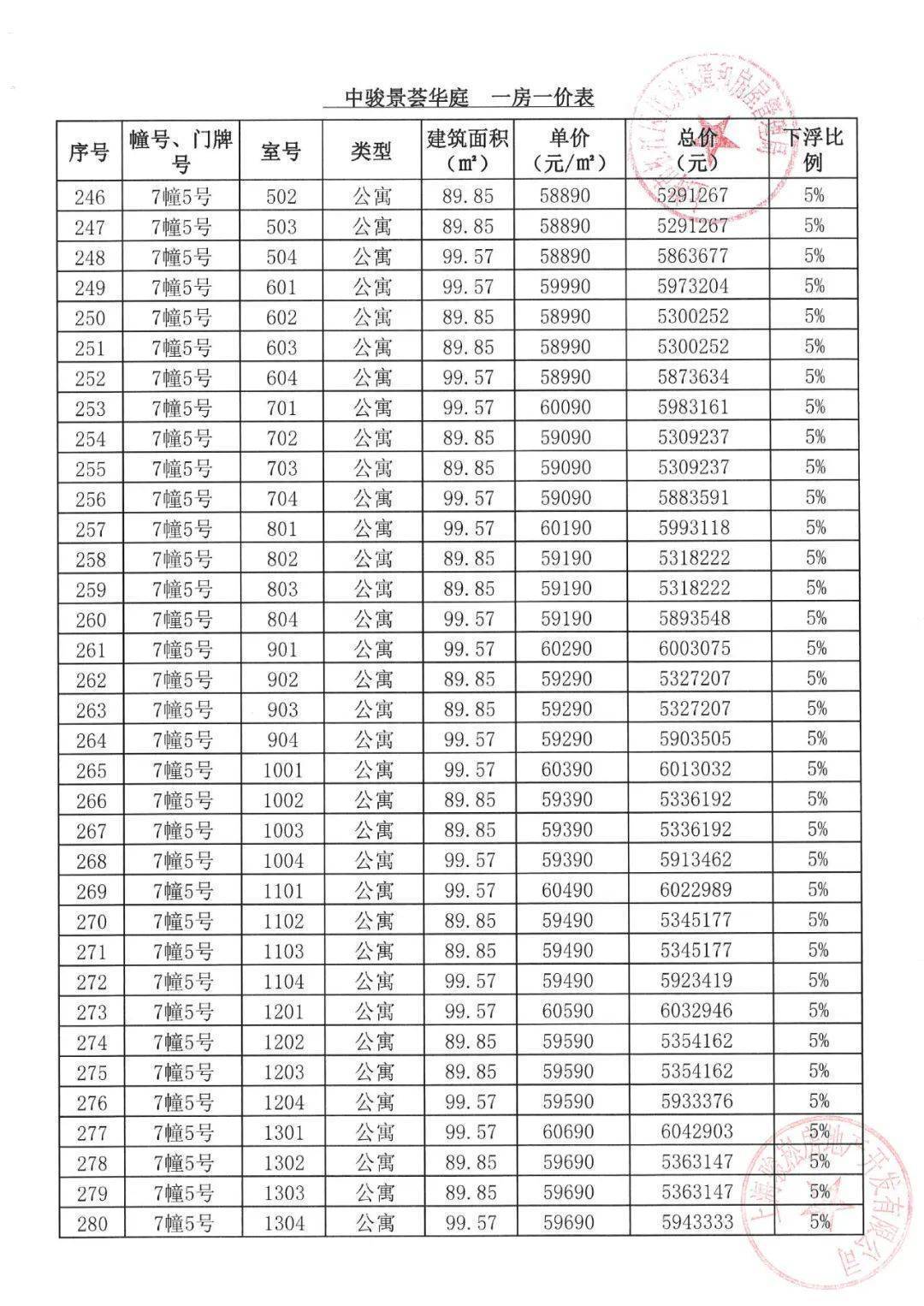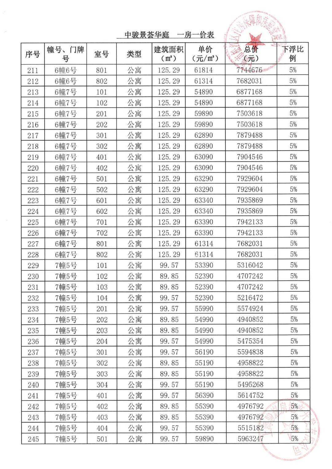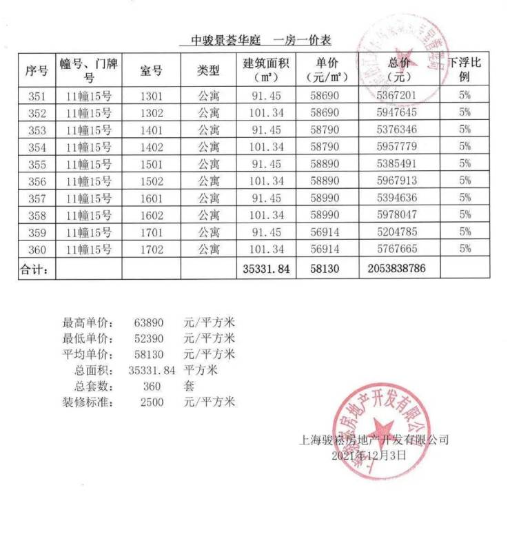 「一房一价表」