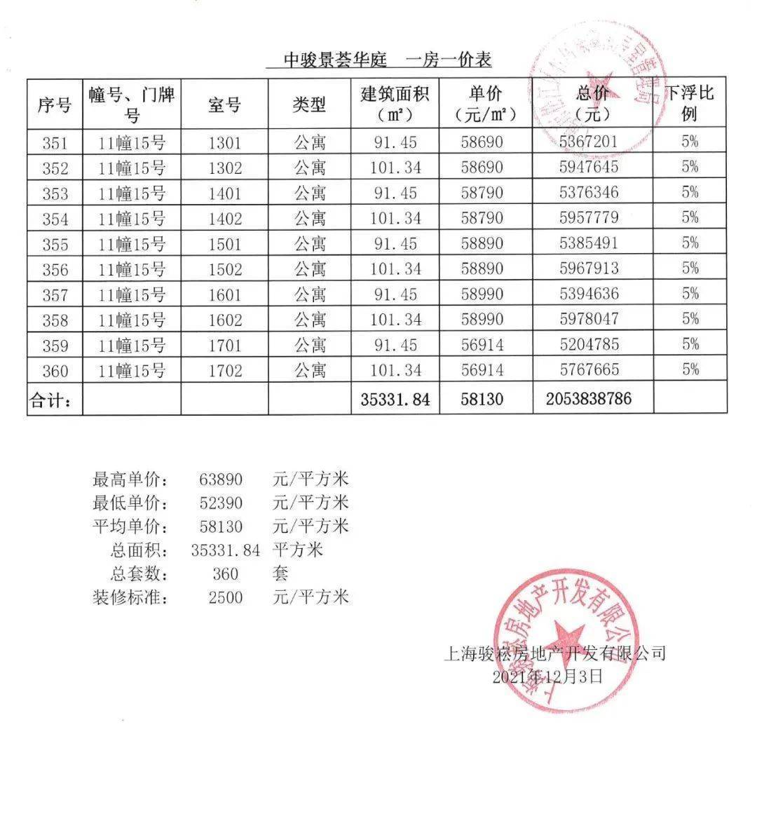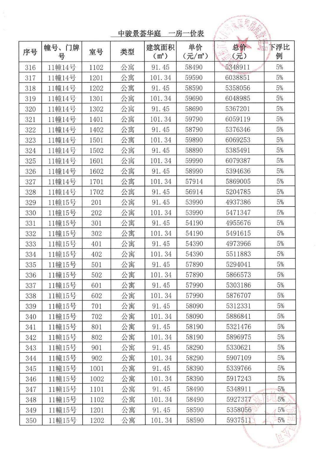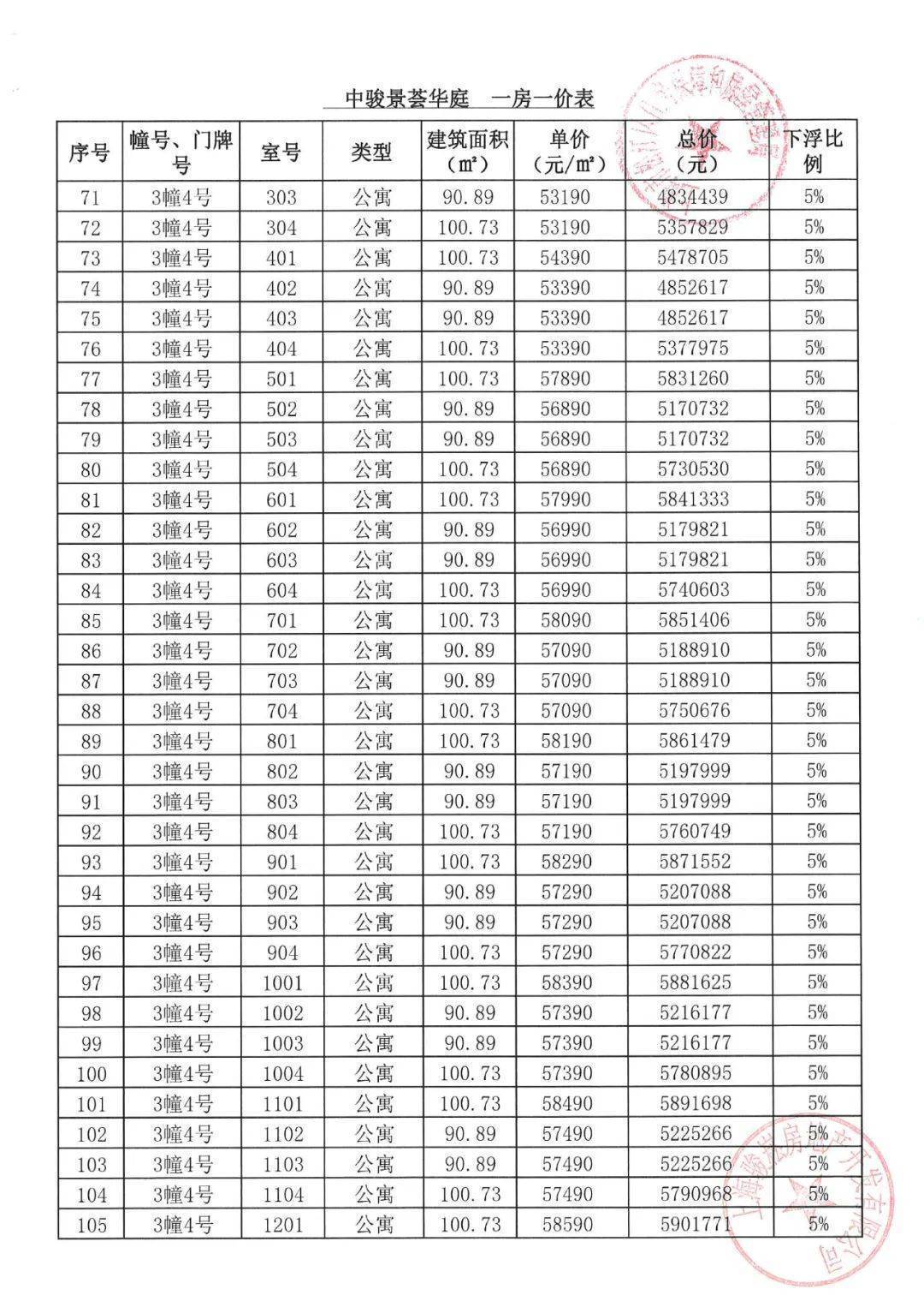 「一房一价表」