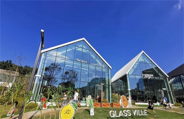GLASS VILL由巴拉山和草坪围筑而成,共2000㎡。项目在此区域打造十个散布的玻璃房建筑,每个单体建筑都引入一个品牌,并与超频广场进行视觉连接,可用于举办各类别的体验式活动,给消费者带来沉浸式互动。此外,还引入大型流通企业排名前列体验型农场咖啡馆“THE BATT”、大型宠物复合文化空间“coco square”等奇异体验。