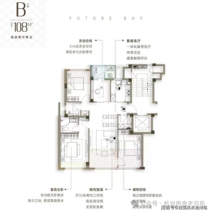 云之城108㎡做了个得房率96%的四房户型,性价比奇高,具体么可以看我们之前的推文《108方四房,137方五房!杭州的户型终于变好了?》