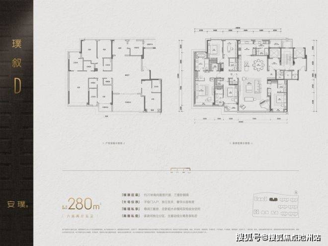 规划5栋12-16层高层与6栋4层排屋,共180户,呈现出稀缺的低密社区格局。高层建面约210-280㎡,均配置五房,顶跃户型建面约275-346㎡;排屋建面约410-510㎡,地上4层,地下层高约6.4米,无论空间尺度还是功能定位,均对标甚至超越奥体、钱江新城的一线高端产品。